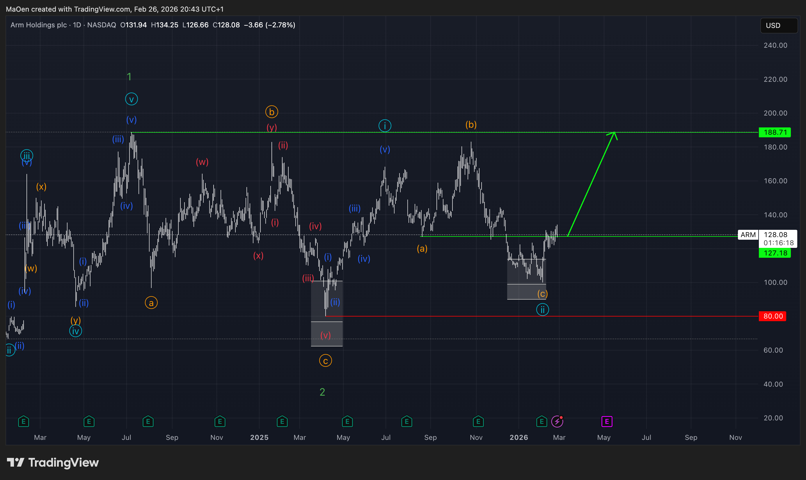 This chart shows Arm Holdings as of 19 December 2025, when the stock entered and activated our previously defined Fibonacci retracement zone. We had identified this zone in advance as a potential buying or accumulation opportunity (https://monalytics.org/arm-holdings-arm-update/)